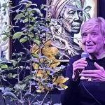 Quem entrava no MARGS se deparava à esquerda com uma iluminação fria, com paredes brancas, cheias de plantas no centro e imagens produzidas com ajuda da IA em Botannica Tirannica. A artista evidenciou o quanto nomes populares de plantas são preconceituosos, xenófobos e se perpetuam na nossa cultura, como por exemplo, judeu-errante, catinga-de-mulata e peito-de-moça. À direita, com a galeria preta com retratos imaginados de mulheres que foram apagadas pela história cunhada pelo machismo e patriarcado. No meio, uma instalação com muitos quilos de resíduo eletrônico e um imenso telão com uma animação também produzida com ajuda da IA.